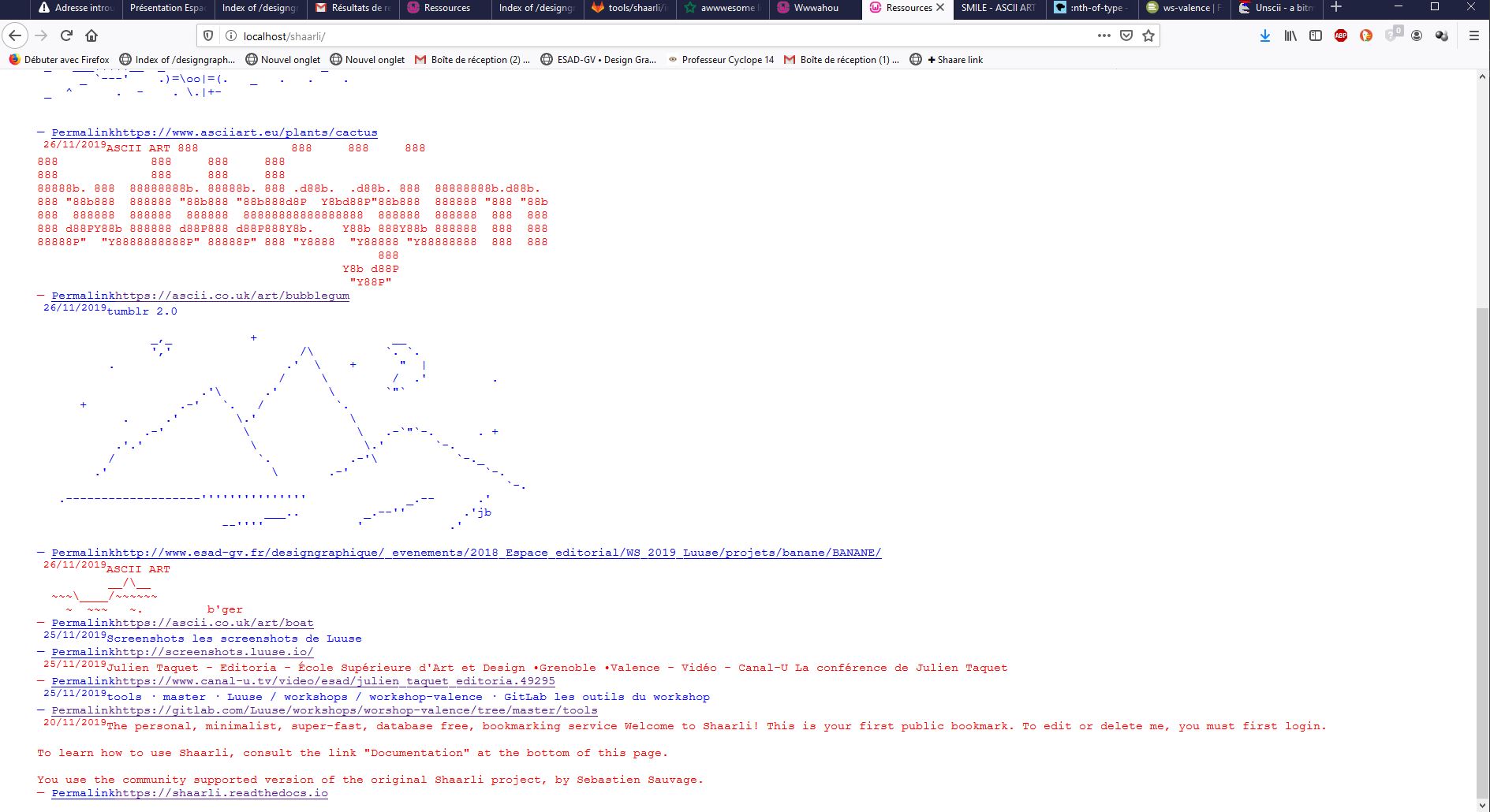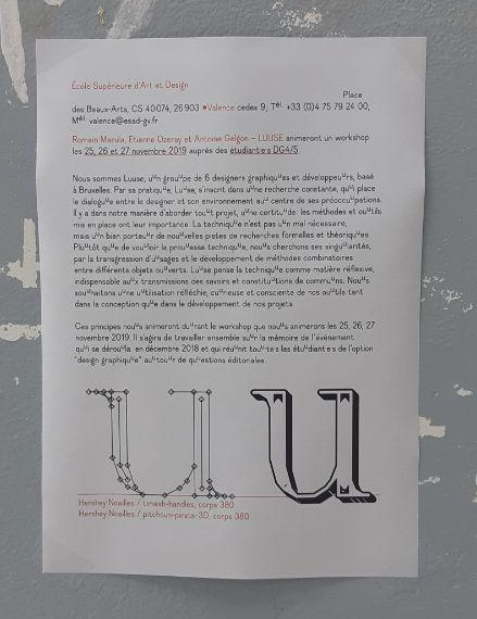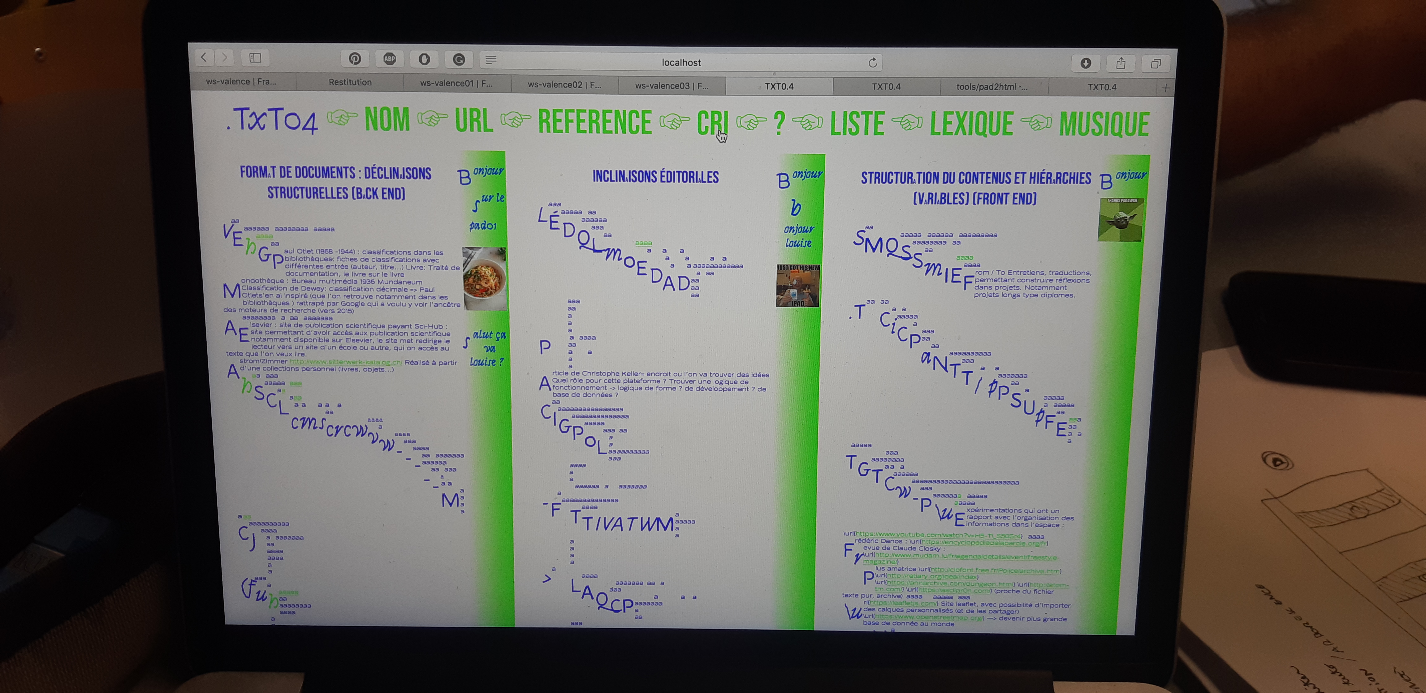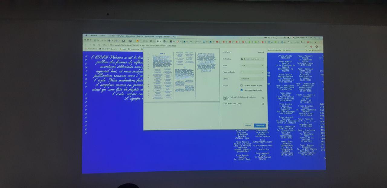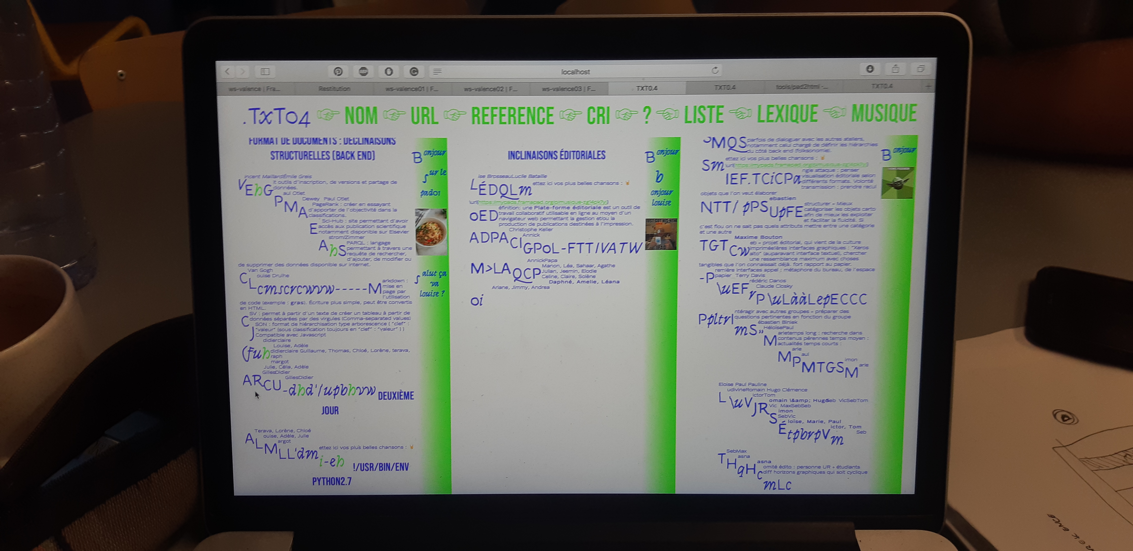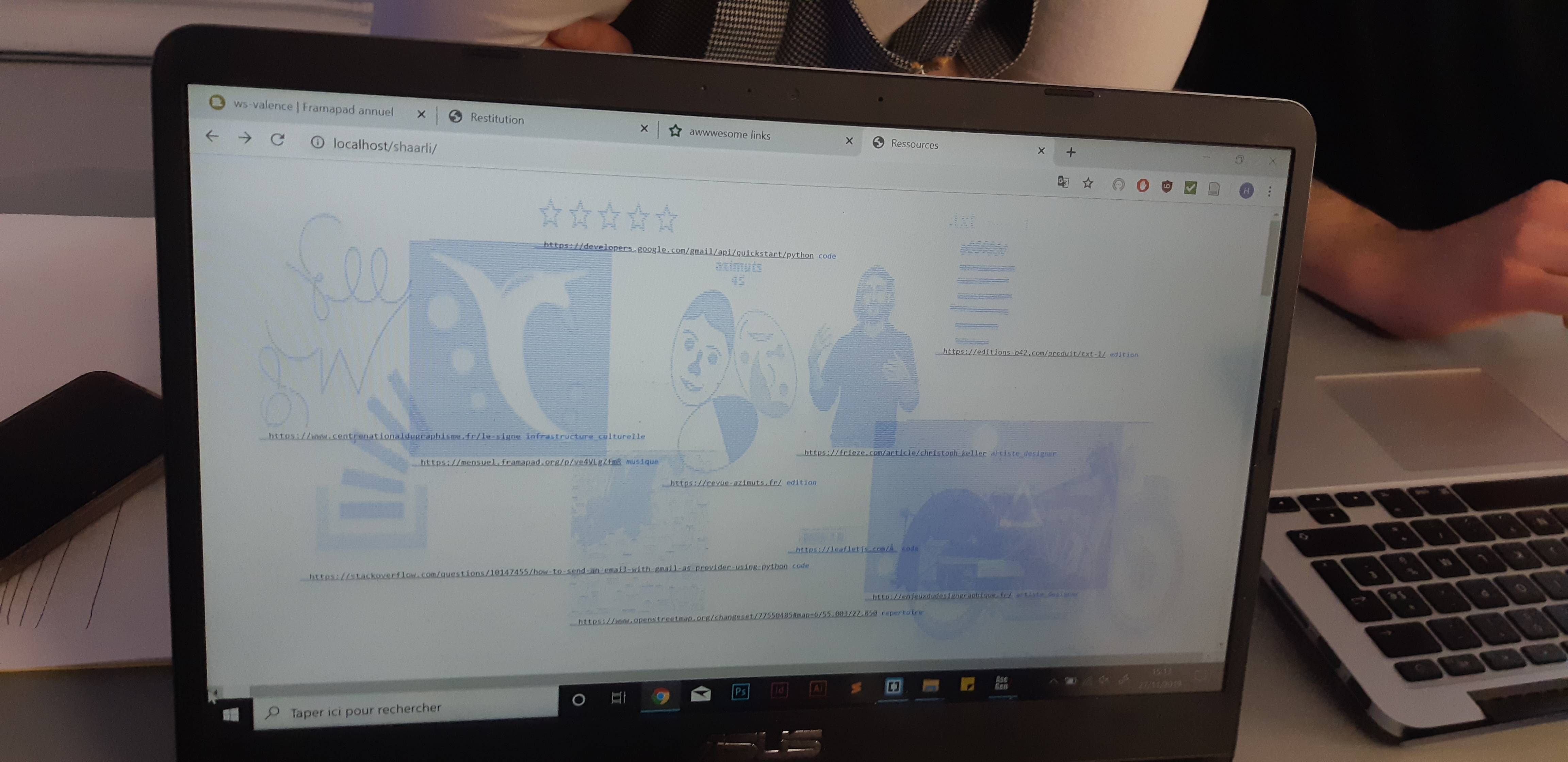 Durant trois jours, du 25 au 27 novembre 2019, nous avons exploré avec les 4e années design Graphique de l'ESAD Valence différentes méthodes, outils et formes de publication en ligne exotiques dans le but de restituer l'évenement qui se déroula en décembre 2018, et qui proposa une série de workshop, une journée d’étude et une table ronde autour de la publication en ligne.