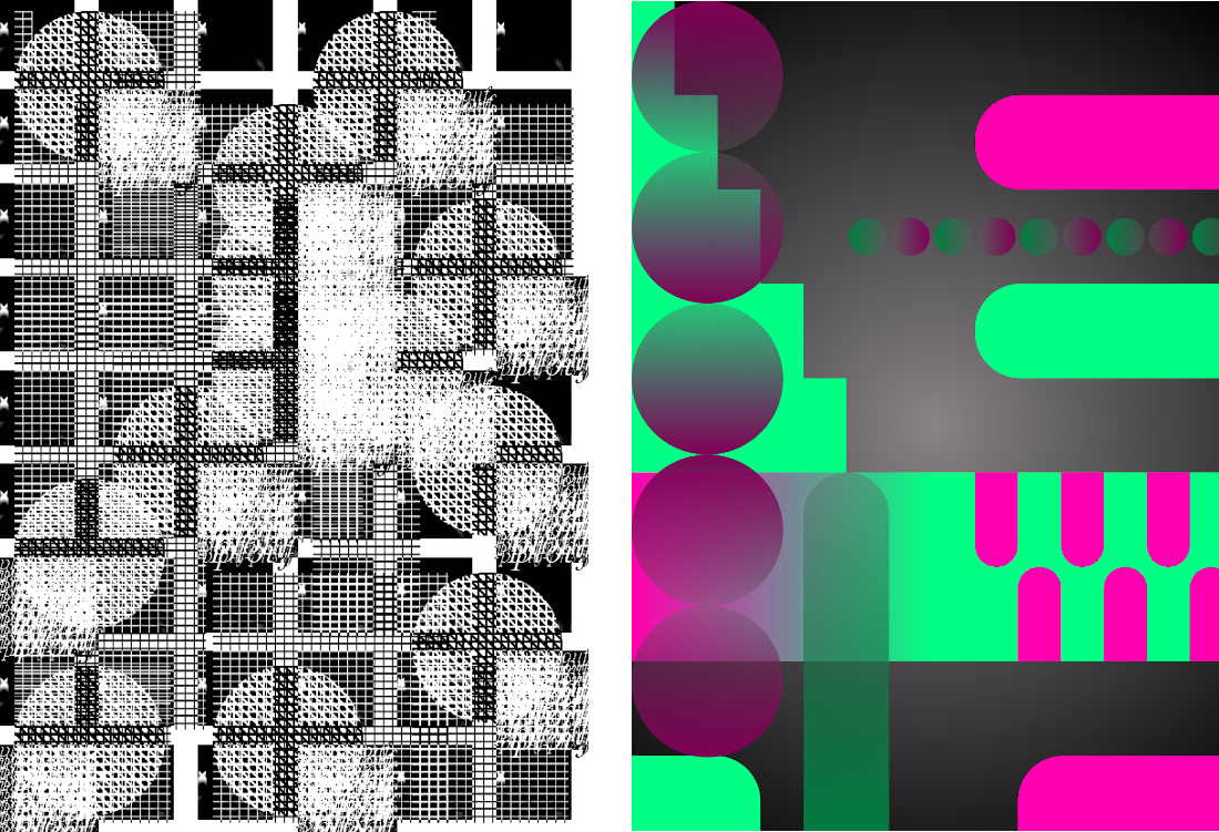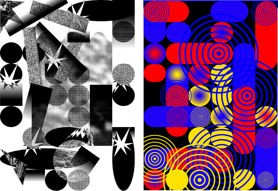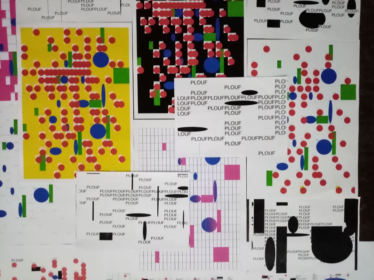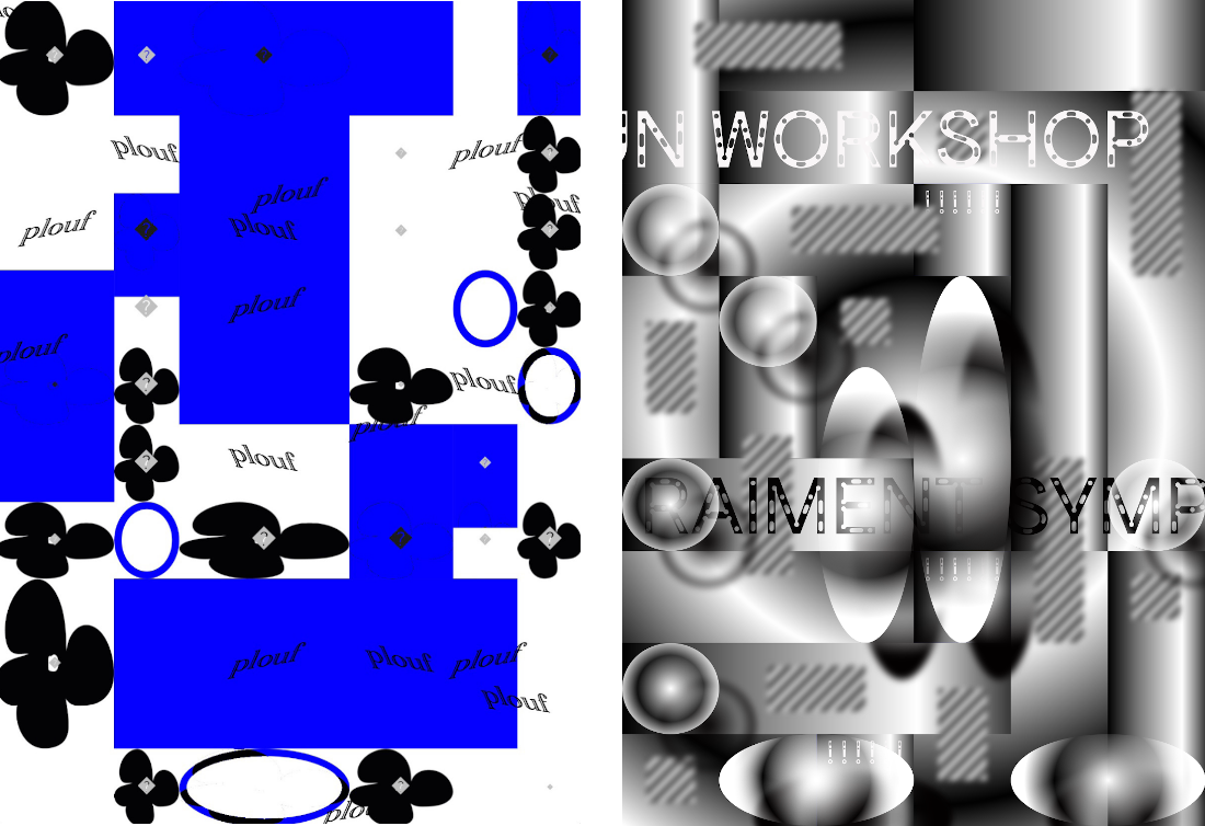 Quelques images des expérimentations d'affiches réalisées en CSS print à partir de ces éléments positionnés. ↷
